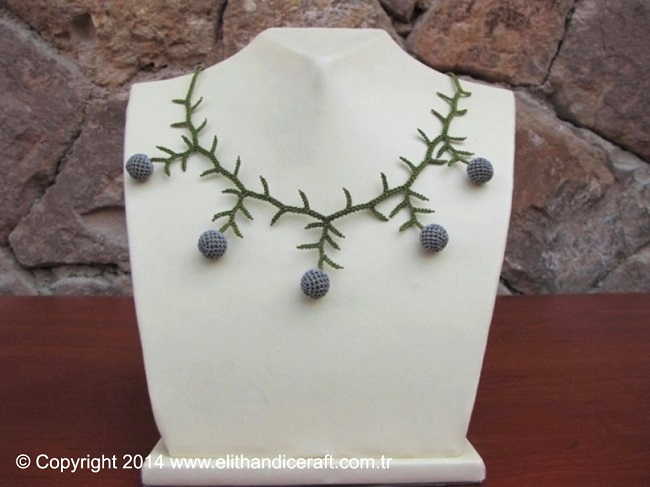 Aşağıdaki modeller içerisinde iğne oyasından yapılmış ardıç kolye modelini inceleyebilirsiniz. Bu model çok hoş ve şık görünüyor.