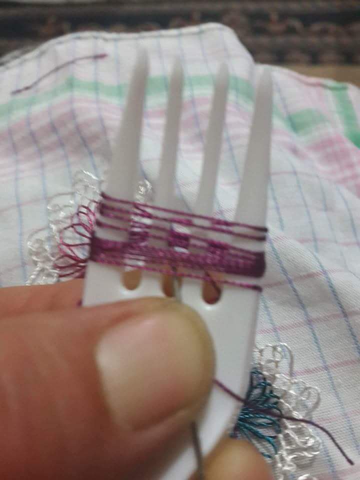 Çatal ile oya yapılışı