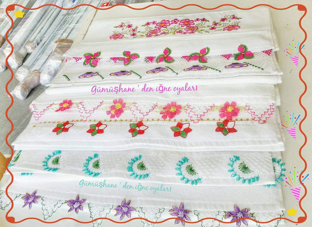 İnstagramda Gümüşhane’den iğne oyaları diye bir sayfam gördüm. Sayfada çok güzel el işleri paylaşılıyor. Bunlar arasında en çok hoşuma giden ise iğne oyası ile yapılan havlulardı. İğne oyalarının bölgeden bölgeye farklılık gösterdiğini bilsek de bazı bölgelerde daha fazla tercih edilmektedirler. Özellikle Karadeniz bölgesinde yaşayan bayanlar iğne oyalarını çok severler. Genellikle çeyiz hazırlığında iğne oyası ile yapılmış yazmaları çok fazla yaparlar. Geçimini iğne oyası ile yapanlar bayanlar bile bulunuyor.