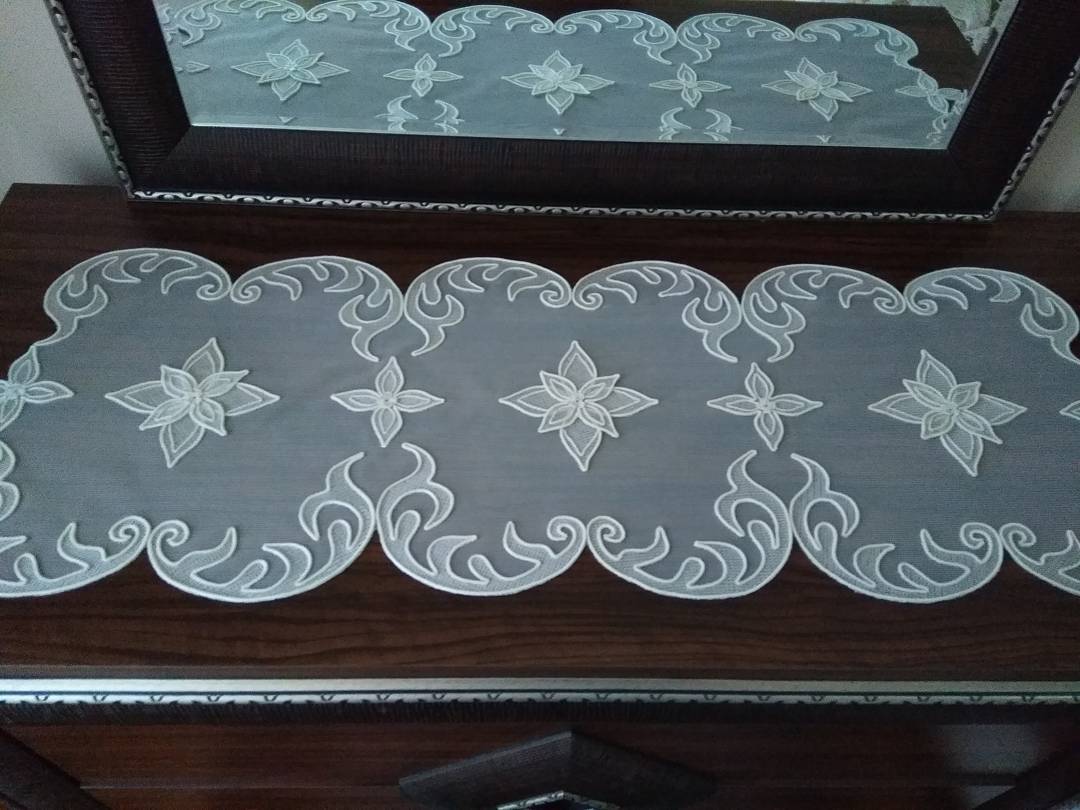 Evlerimizin baş tacı elbette ki salonlarımız, salonlarımızın vazgeçilmezi ise salon takımları. Masa, sandalye, vitrin ve konsoldan oluşan takımlar. İşte bugün size dantelli konsol örtüsü modellerinden biraz bahsetmek ve örnekler sunmak istemekteyiz. Daha evvelki yazılarımızda da zaman zaman salon takımlarından bahsetmiştik. Salon takımları çok çeşitli yöntemler ile yapılabilmekte. Bazen bir nakış işi, bazen kanaviçe , bazen kasmakta işlenmiş bir boncuk işi, bazen bir iğne oyası bazen de tamamen el emeği göz nuru işlenmiş bir dantelden oluşur salon takımlarımız. Son zamanlarda her ne kadar bin bir renk güpürlerle yapılan salon takımları öne çıkmaya başlasa da bunlar asla gerçek dantelin yerini tutmamaktadır. Hanımlarımız tarihten bugüne danteli hep var etmiş ve korumuşlardır.