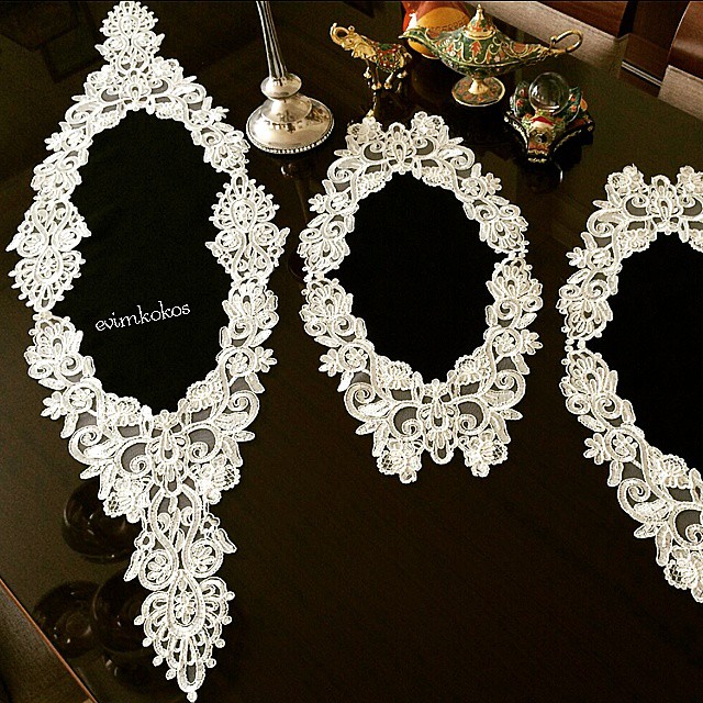 Konsol takımı dantelleri yaparak konsolların daha dekoratif görünmesini sağlayabilirsiniz. Konsol masa örtüleri ve konsol dantelleri sitemizde yer alıyor.