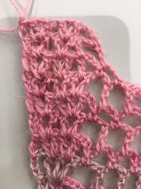 Yükselirken çoğaltmalar iki sıra örülür. 3. sırada arttırılır. Bu işlem 5 yaprak bitene kadar devam eder. 6. yaprak başlar çoğaltmalar yapılmaz düz devam eder 7. yaprağın sonunda daraltma başlar.