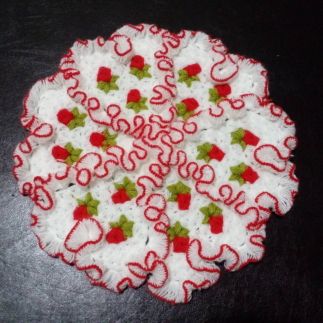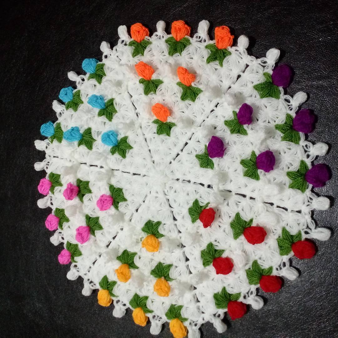 Bu sırada 6 adet fıstık modelli çiçeğimiz ortaya çıkacak. Sonraki sırada yine beyaz ipimize geçip 15 adet 3 tırabzan ve yine diğer sırada 15 adet 3lü tırabzan yapıyoruz. Tırabzanlarımızın her bir köşesine alt birleşim yerlerinden birere adet fıstık dolgusu yapıyoruz. Üst üste 3 sırayı köşelerde fıstık dolgu aralarda tırabzanlar yaparak geçiyoruz. Lifimizin uç kısmında orta başlangıçtaki çiçeklerden bir pembe, bir beyaz olmak üzere 12 adet yapıp ön tarafını tamamlamış oluyoruz. Bildiğiniz gibi en güzel lifler çift katlı ve yumuşak olanlardır. Bu nedenle lifin arka bölümü yani ikinci katını dilerseniz tırabzanla ya da benim tercihim olan fıstık dolgusu ile yapabilirsiniz.