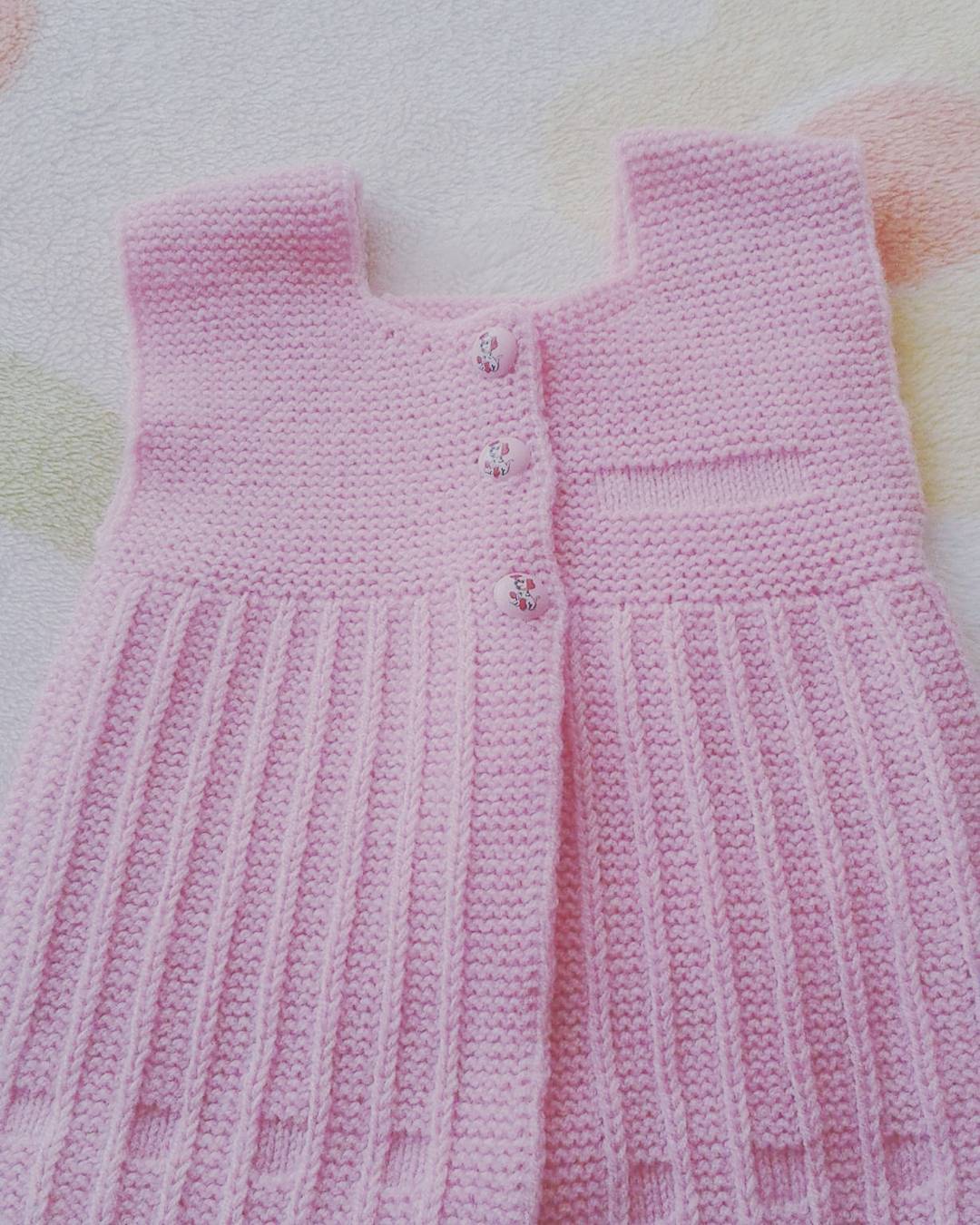 Bu bölümde sizin için tığ ile örülen ve pofuduk pofuduk görülen bebek yelekleri 2016 versiyonunun şık bir örneğini anlatacağım. Gerekli malzemeler 6 numara tığ ve orta kalınlıkta yumuşak bebe yünü. Pofurduk yeleğimize 50 ilmek zincir çekerek başlıyoruz. 2. Sırada zincirimizin üstüne 47 adet sık iğne geçiyoruz. 3. Sırada on artırımla 57 tane sık iğne ve 4. Sırada yine 10 artırımlı 67 tane sık iğne yapıyoruz. Bu şekilde her bir sırada 10 adet artırarak 97 ilmek ve altı sıra ile bu bölümü tamamlıyoruz. Ön ve arka bölümü bütün olarak giden diğer örgü bebek yelek modelleri gibi bu yeleği dilerseniz hırkaya da dönüştürebilirsiniz. Bu sırada ikil fıstık yaparak aralarına 2 şer zincir yapıyoruz. 9 sıra bu şekilde gittikten sonra roba kısmını aralarında 2 şer zincir çekilmiş 2 li tırabzanlar ile 6 sıra kadar daha örüyoruz. Tabi ki tam kol altı olacak olan roba başlangıcında her iki kol bölmesinde 16 adet tırabzan olacak şekilde artırım yapıyoruz. Sonraki sıralarda ise eksiltmeli giderek 7 sıra kadar örüp yakada bitiriyoruz. Pek çok bebek yelek modelleri tasarımlarında da gördüğümüz gibi yeleğimizin ön kısımlarını 3er sıralık sık iğne ile dolaşıyoruz. Kapatma bölümüne düğme konulacaksa ilik boşlukları konulmasında fayda var. Kız çocukları için biraz daha süslü hale getirmek isterseniz bu bölümü şık bir oya ile de tamamlayabilirsiniz.